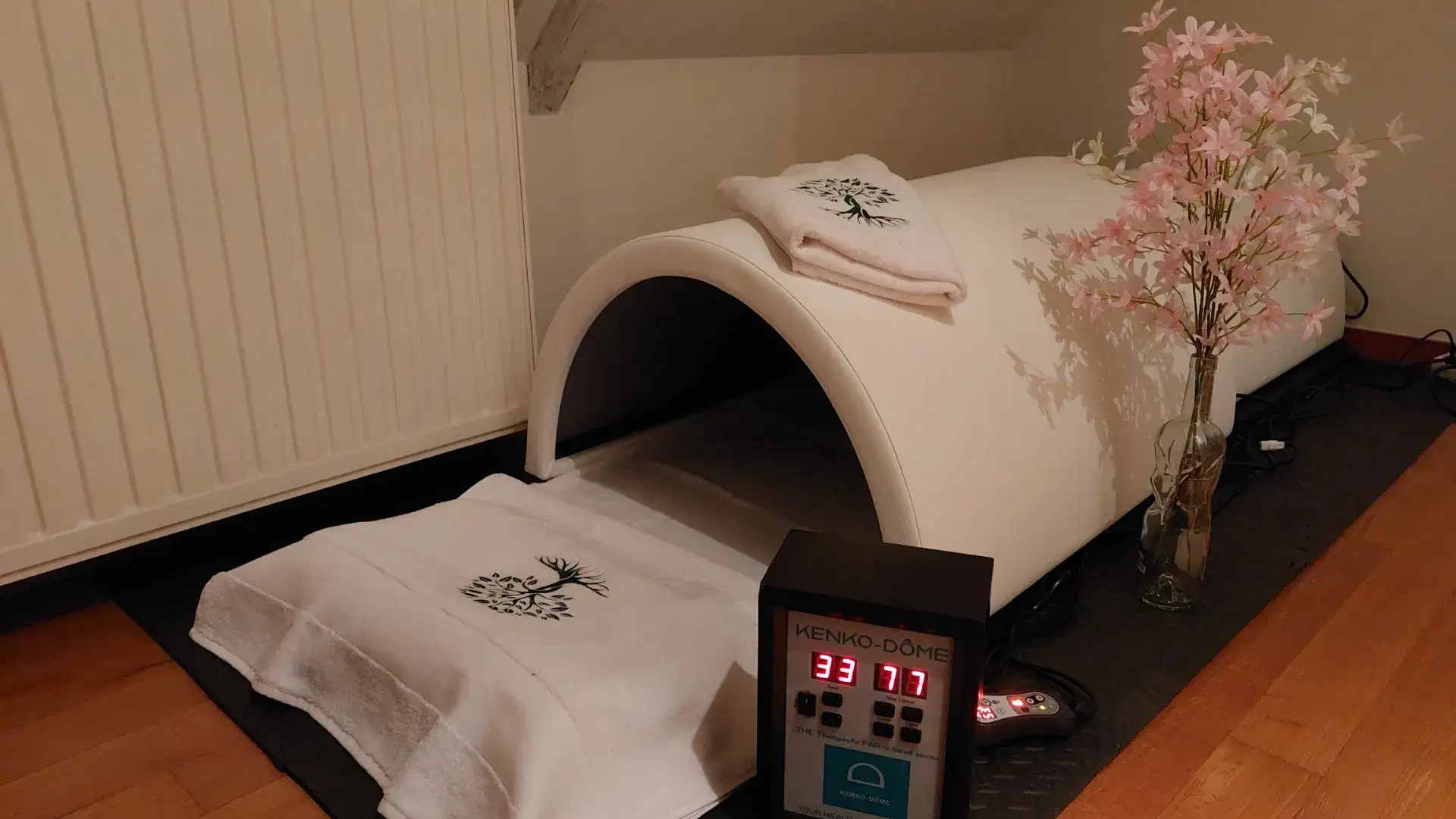 De KENKO-DÔME infraroodtunnel verwarmt je lichaam van binnenuit met ver-infraroodstraling. In tegenstelling tot een klassieke sauna voelt de warmte mild aan, maar ze werkt intens in op spieren, gewrichten en doorbloeding.